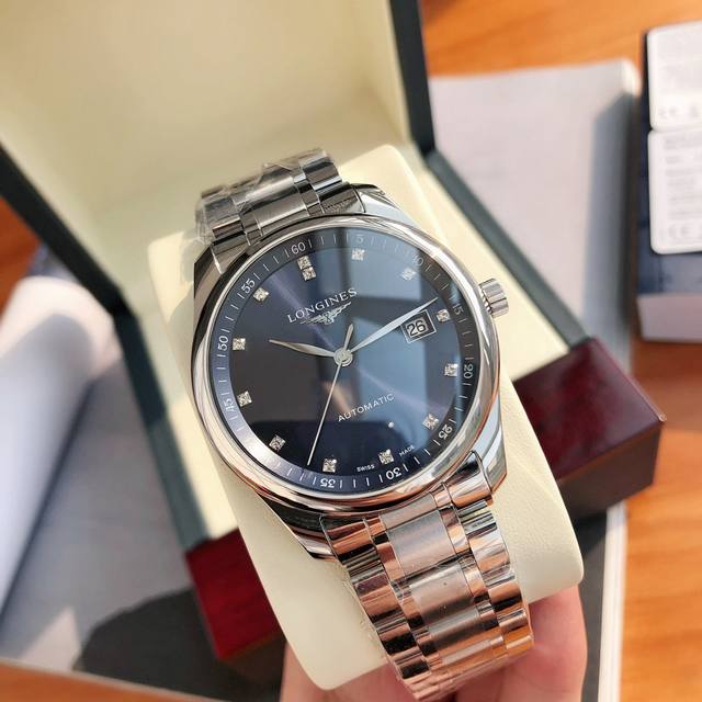 独家货源!超级大牌经典不败的浪琴名匠系列!浪琴“名匠真钻款”原装,百年经典,超薄设计风格呈现佩戴者腕上十足的简约品质。原厂精钢表带,赠送皮带一副,一表两用,表径40Mm,银色三折式安全表扣和按压式开启装置、“背透”瑞士全自动机械机芯,机芯动感一目了然!防水深度30米、镶嵌13颗上品韦塞尔顿Vs-Sl级钻石组成,总重0.059克拉,每一个配有砖石卡,确保每一颗都是真材实料的真钻,镀银抛光指针、抗磨损合成蓝宝石玻璃镜面,点缀优雅的钻石数字时标,与简洁美观的中央蓝钢大三针相呼应,机芯采用