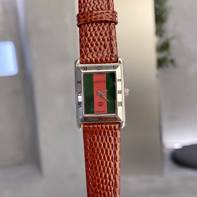 Gucci Vintage 中古表最怀念的味道那就是gucci罗马表盘,浓浓的怀旧气息和历史感是中古表给的。简约表盘,外圈是复古又有辨识度的罗马刻度。日常搭配衬衫,文艺风范满满。古驰经典配色黑金和红条绿呈现高级质感。21Mm30Mm小方盘也是气质款不二选择。百搭通勤款,精致女孩必备!