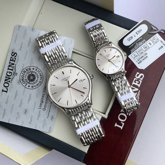 白 金 钢带+20。 最新经典浪琴-Longines 情侣对表 原装进口石英机芯 钢化玻璃 316L精钢表壳 直径男40Mm女30Mm 厚8Mm如果今天的阳光停