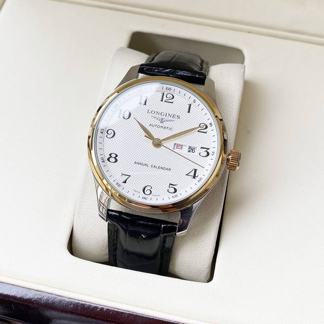 经典风格 优雅气质 浪琴-Longines 男士腕表 全自动机械 西铁城8215机芯 矿物强化玻璃 316L精钢表壳 进口小牛皮表带 简约设计 商务休闲 尺寸:直径40Mm 厚度12Mm