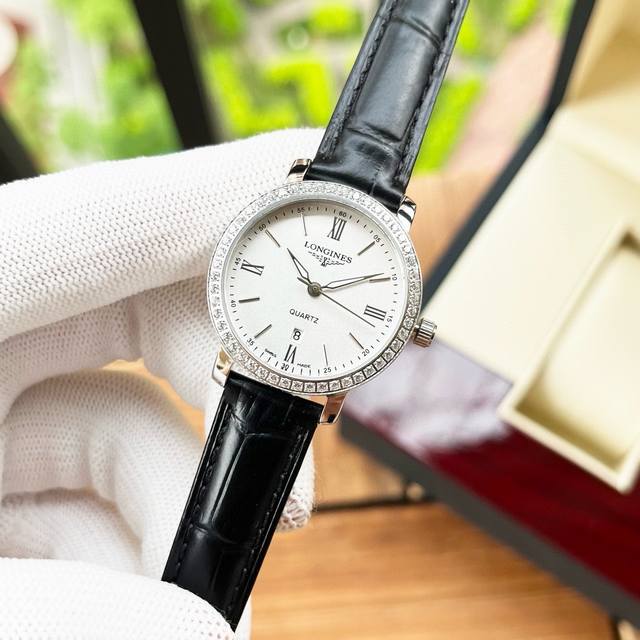 钻 皮 . 钢带20 浪琴-Longines简约大气女款 进口石英机芯 矿物质玻璃镜面 316L精钢表壳 直径28Mm厚8Mm...