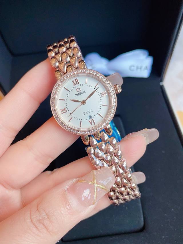 升级版omega -欧米茄典雅系列 卓越的惊艳亮相,将华贵珠宝的优雅魅力与卓越时计的精准技术完美结合“露珠”连结成一条光华夺目的表链,流畅的线条洋溢着柔美灵动的女性韵味。五节式表链搭配蝴蝶表扣,精巧迷人!尺寸28Mm,进口机芯机芯,。高品质。